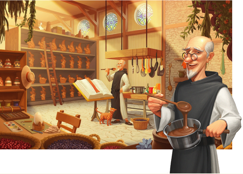 La curiosité et le savoir-faire du moine Savant ont permis de contribuer activement à l’évolution de la Chocolaterie.