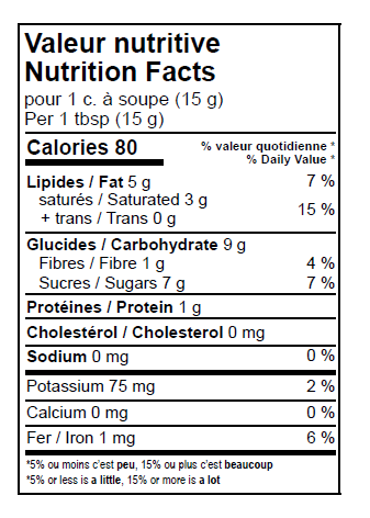 Sucre, chocolat non sucré, beurre de cacao, lécithine de soya, essence de vanille.