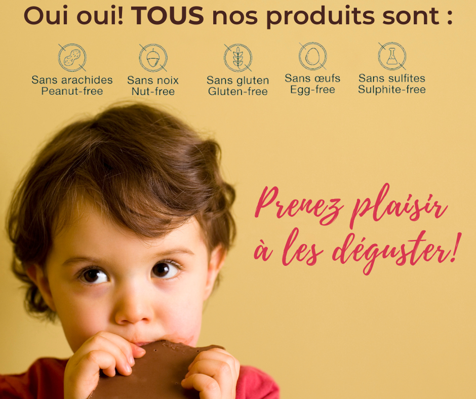 Le contrôle des allergènes est une priorité à la Chocolaterie des Pères de Mistassini. Nous effectuons plusieurs contrôles pour maîtriser le danger de contamination de nos produits par des allergènes. Nous avons des normes très strictes quant à la gestion des allergènes à déclaration obligatoire tels que les noix, les arachides, les œufs, le gluten et les sulfites. Vos questionnements envers nos contrôles sont tout à fait légitimes et c’est grâce à ceux-ci que la Chocolaterie des Pères ainsi tous les autres transformateurs d’aliments au Québec perçoivent la nécessité de protéger les consommateurs des risques que représentent les allergènes. Merci de votre confiance et n’hésitez pas à nous partager toutes questions ou inquiétudes en lien avec ce sujet.
